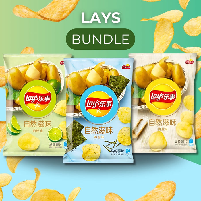 Lay’s 50% Reduced Fat Crisps Bundle – Imported from China (3 Flavours, 65g Each)